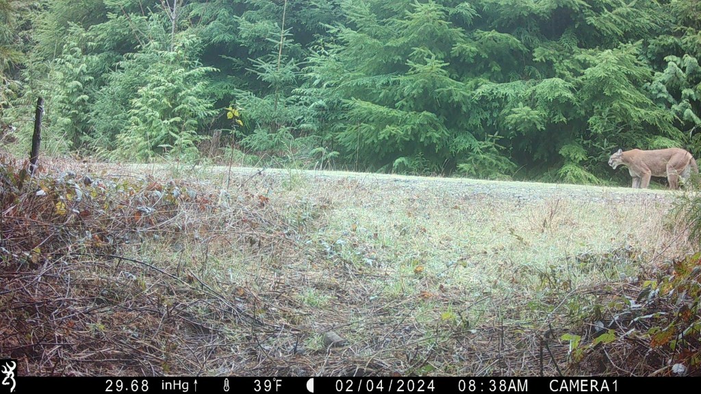 Honestly, though the one that keeps me up at night is the mountain lion. At least for now. See, I got a trail cam earlier this year. MERRY XMAS TO ME! But since I’ve had it out there—and mind you, it’s only been since February that it’s been turned on—I’ve spotted two, maybe 3. It’s hard to tell if they’re unique or not sometimes.
