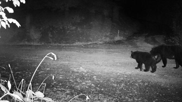 Honestly, I don’t think we really wanted to see one in the flesh. Bears while sort of like a larger raccoon (For the most part, they’re more afraid of you, would rather eat your trash than you, and unless babies are involved will generally bolt upon seeing you.) aren’t something I really long to encounter in the wild. Suffice it to say, we didn’t see any bears. Well, now we have and sadly it’s the less ideal kind – momma and cub.