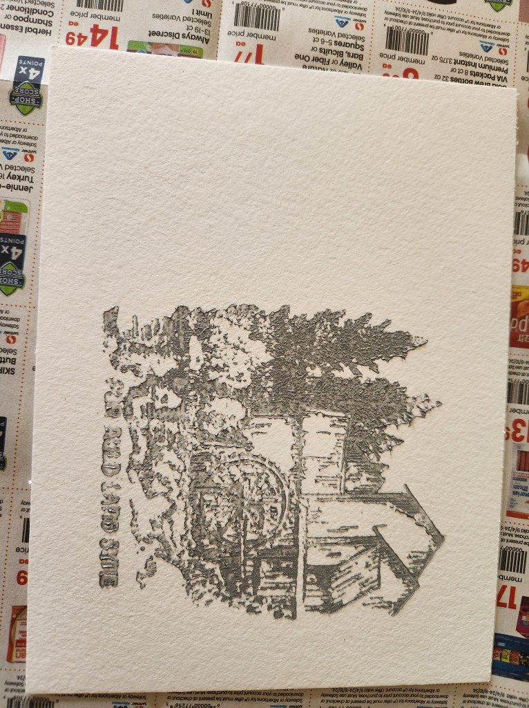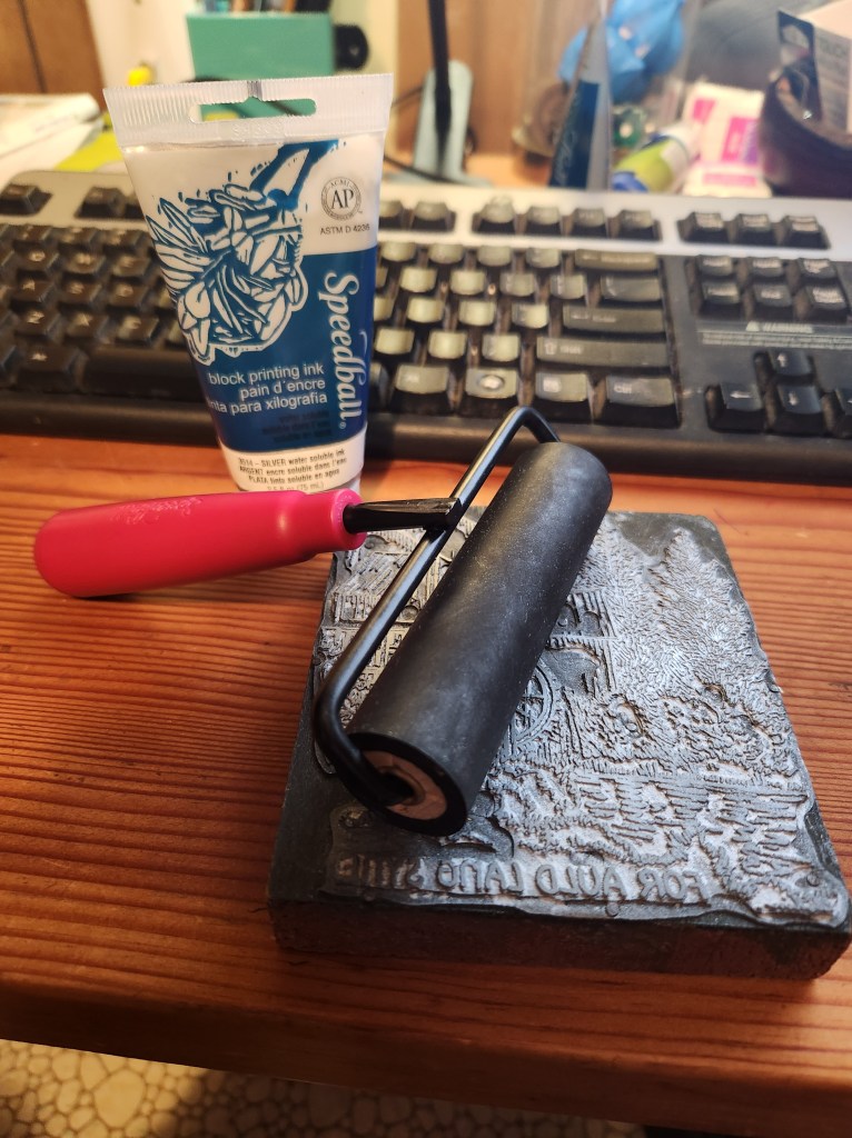 2. Ink – I like Speedball. They make nice stuff. I had this metallic silver laying around. I will caution that metallics are a little thicker and thus a little more challenging to work with but I think the results were worth it for my first year doing block printing since undergrad. Shush. Yes I am that old…