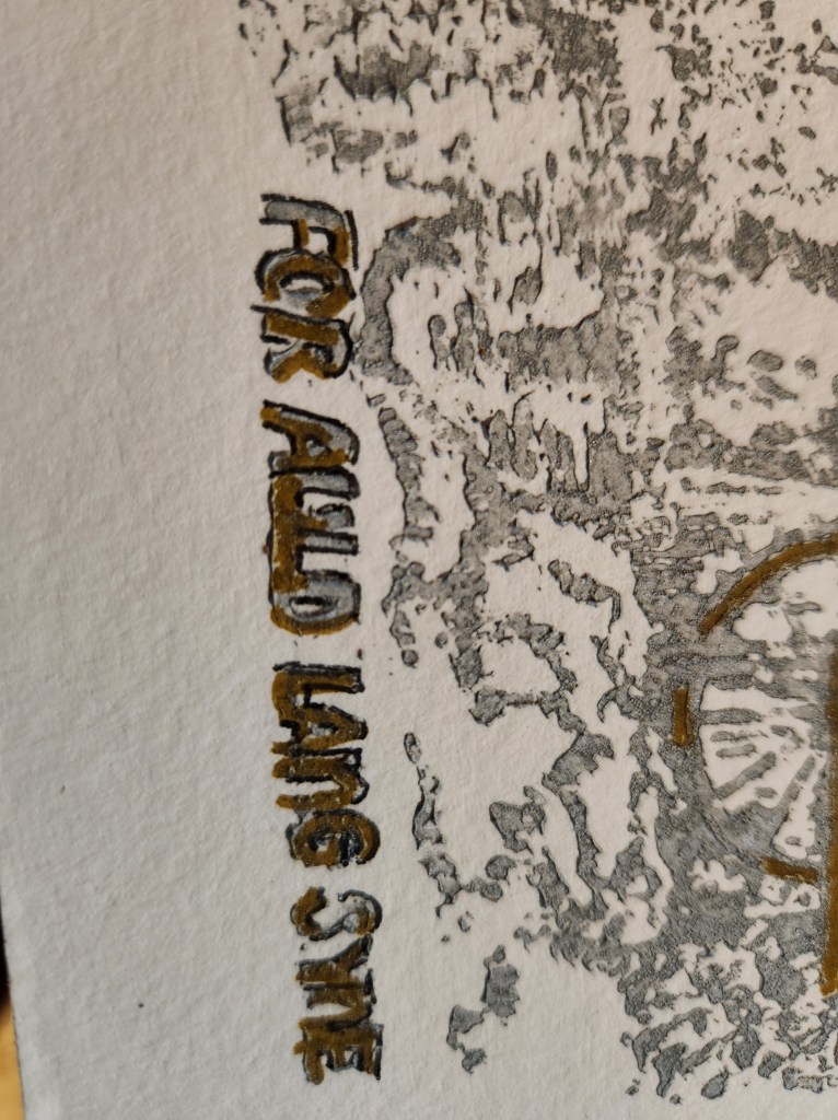 3. A Block Print – You can make your own if you’re feeling ambitious or you can try to find one. It’s up to you. Next year maybe I’ll try my hand at making my own linoleum block print. Again, it’s been ages but I’ve done it and I have an idea of what might be next. (If you’re making your own remember you’re making a mirror image when printing so think about that if you’re adding text!)